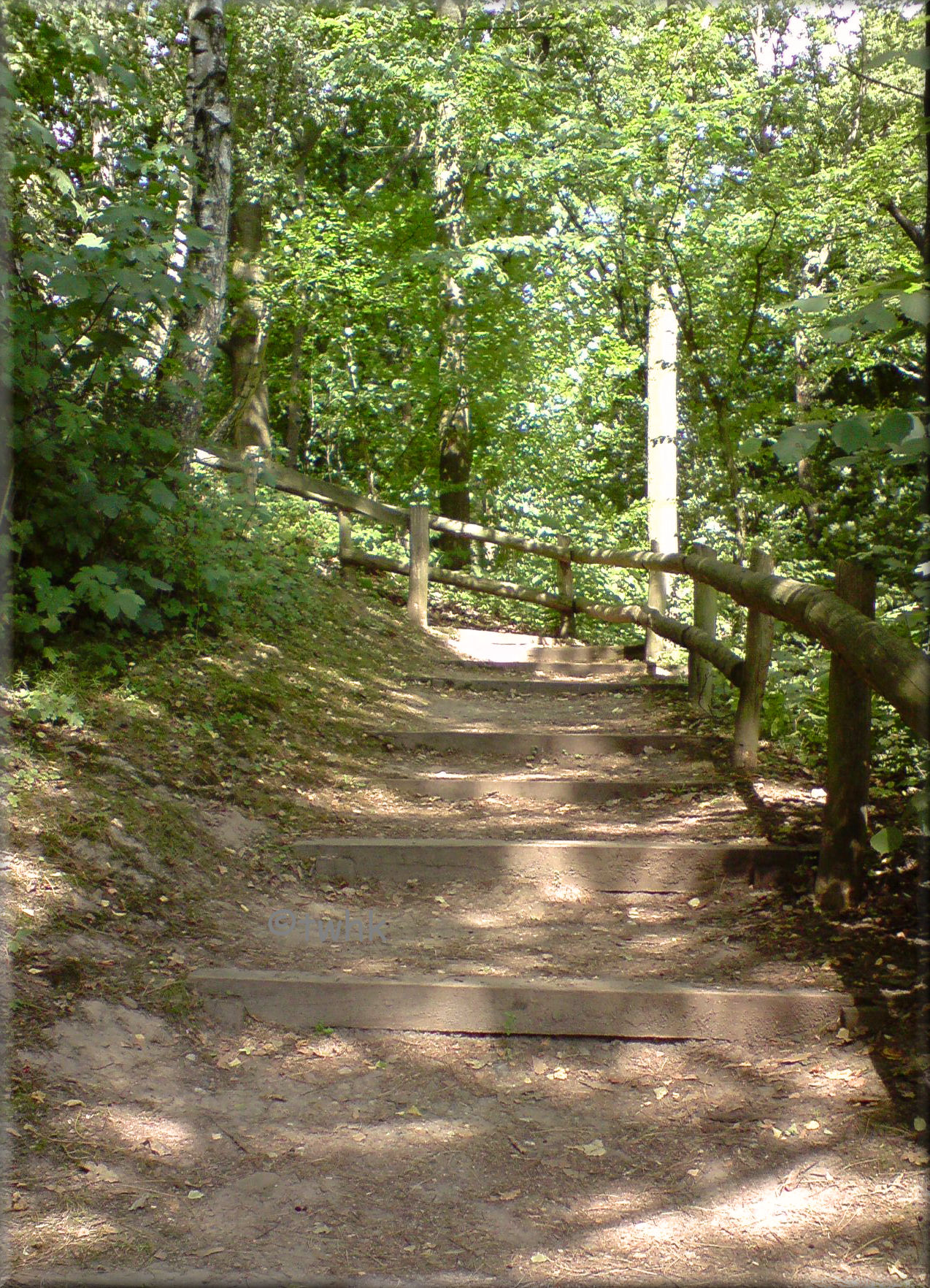 über eine Treppe und auf einem Fußweg zur schönen Badestelle am Lankauer See gelangt.