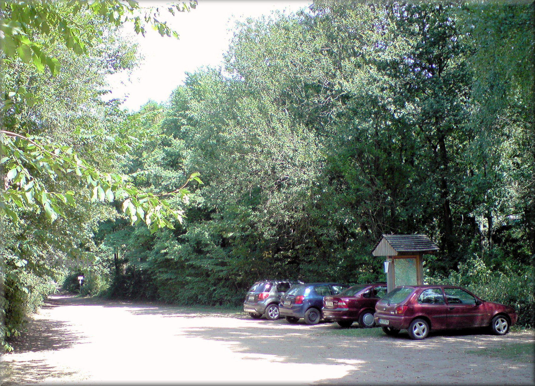 Parkplatz und Informationstafel (nach links führt die Treppe hinunter zum See)