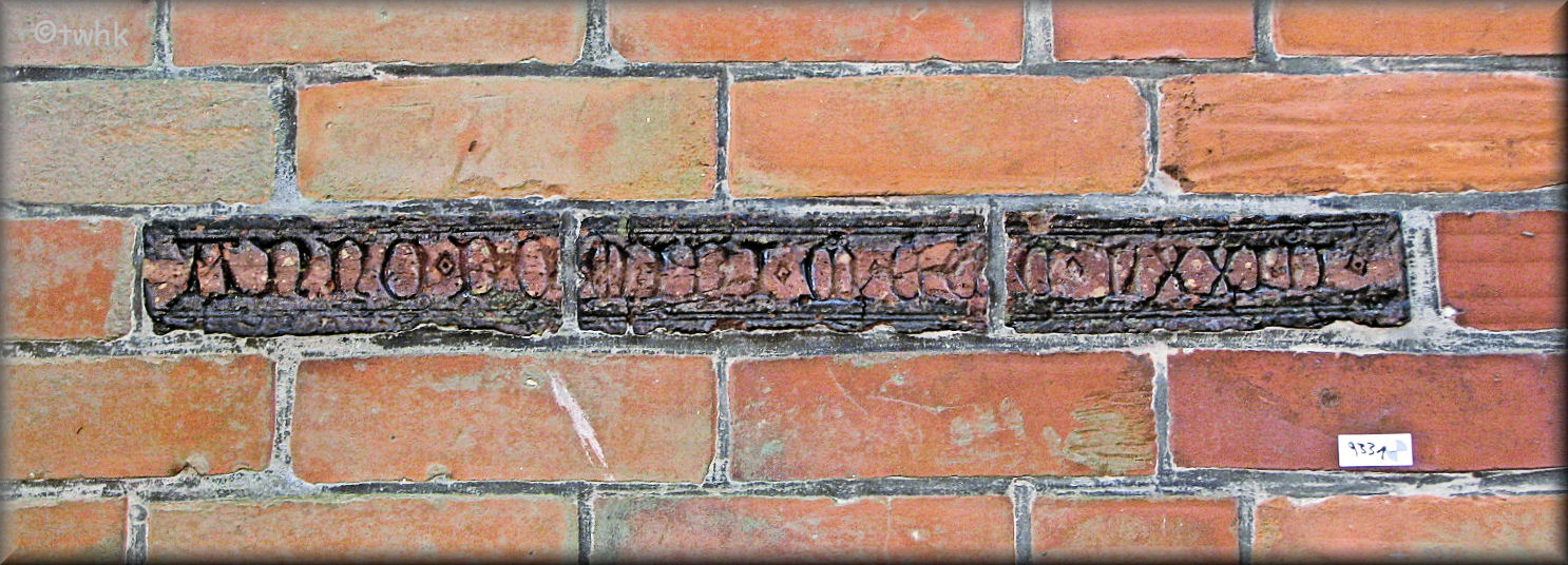 Und noch eine in Ziegel gebrannte Inschrift in der Rathausmauer.