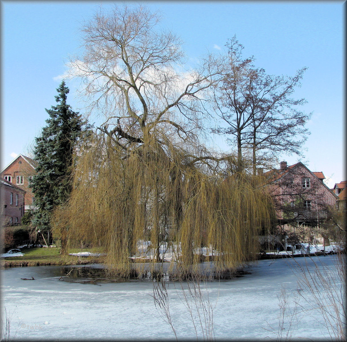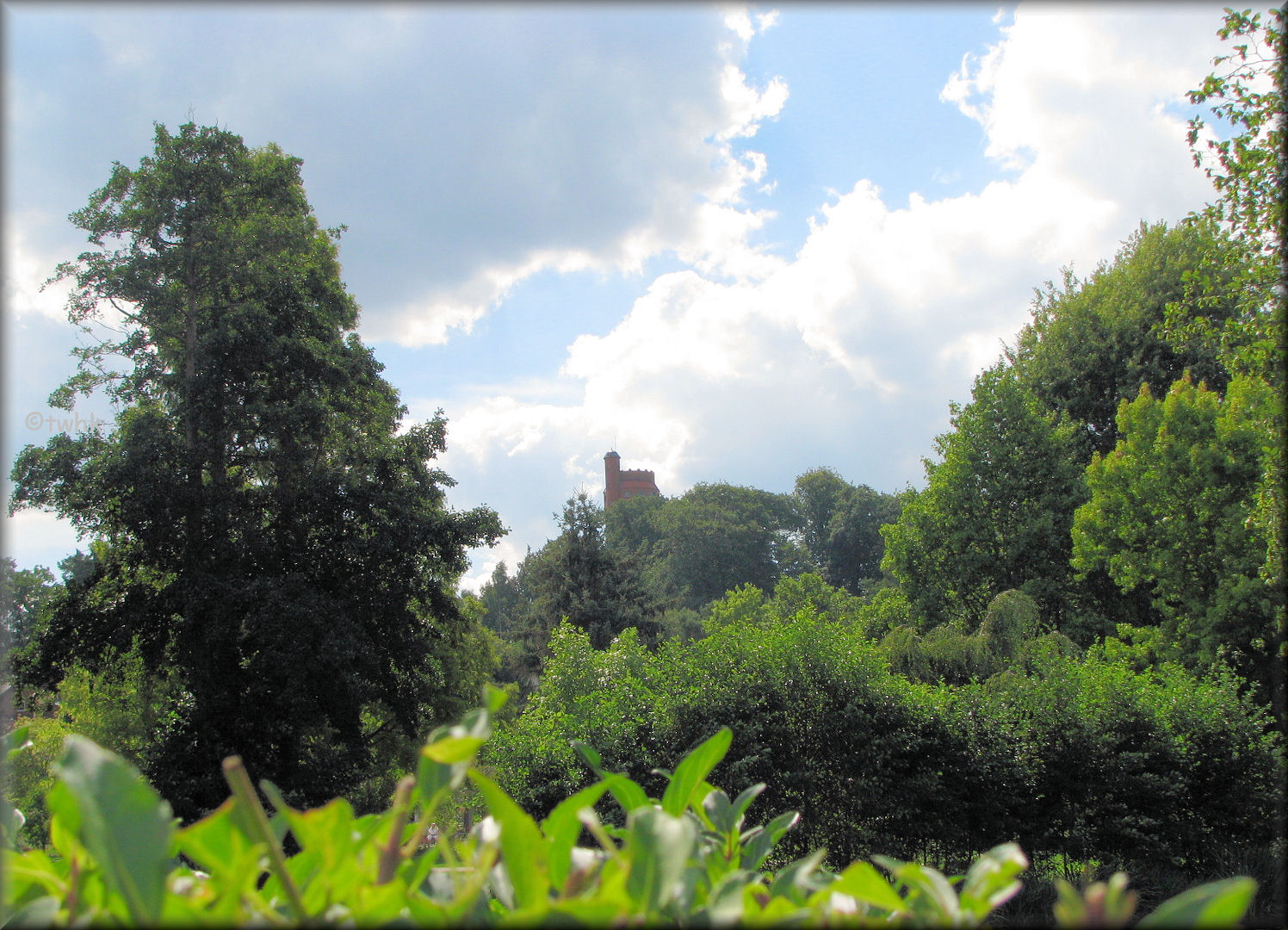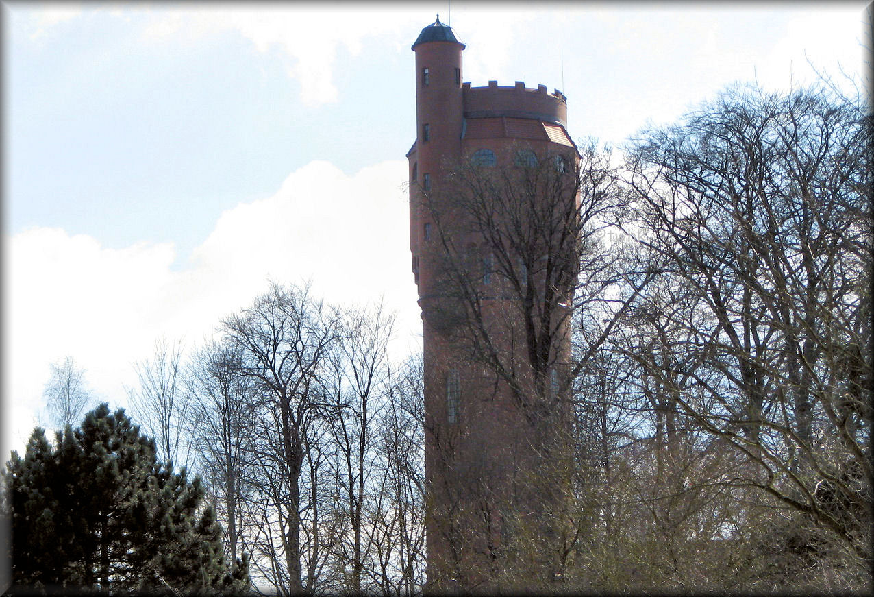 Die noch kahlen Bäume lassen einen freien Blick auf den Wasserturm zu.