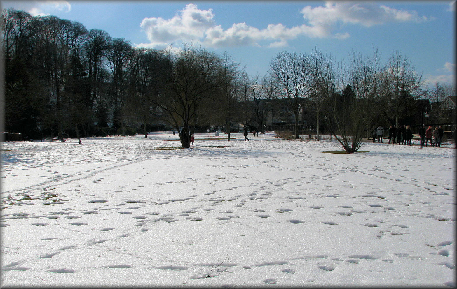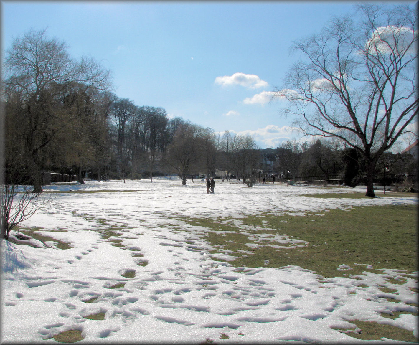 In den Schneeresten des Kurparks zeigen sich viele Spuren.