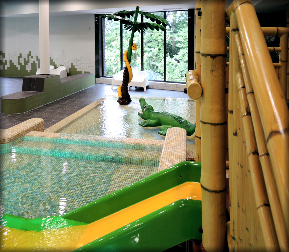 (mit Nacken-Jets und Massagedüsen) und einen hübsch gestalteten Kleinkinder-Wasserbereich