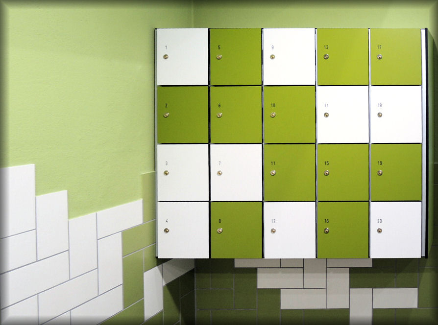 Im Innenbereich des Bades gibt es einige Wertfächer, die per Schlüssel verschlossen werden können.