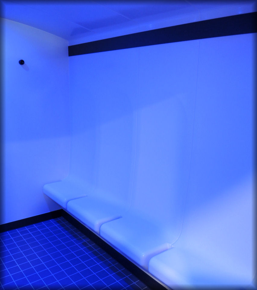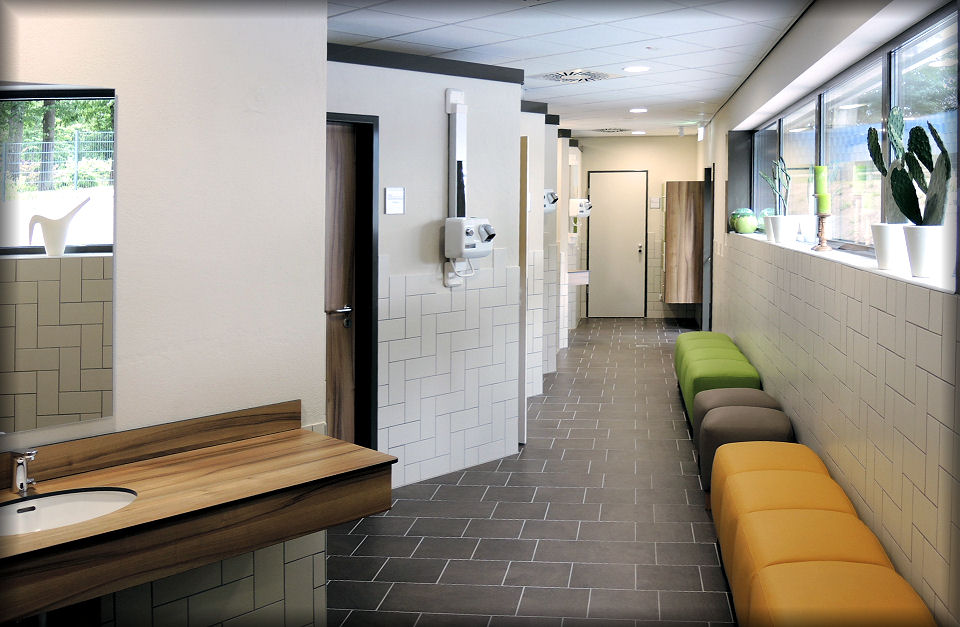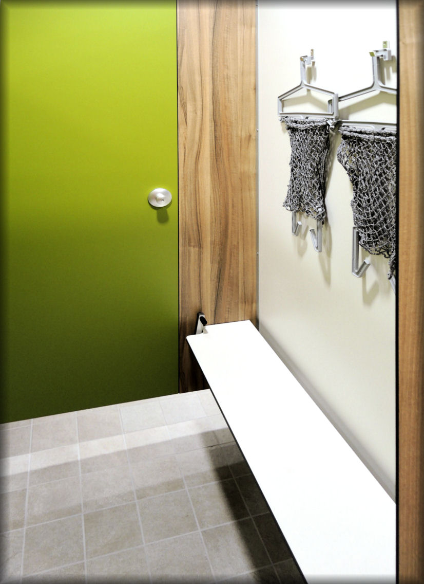Es gibt auch Sammelumkleideräume, diese erscheinen mir allerdings etwas klein geraten.