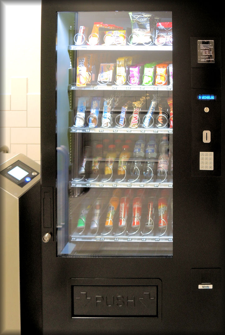 Leider gibt es auch hier wieder einen Warenautomaten mit Süßigkeiten und Getränken in Aluminiumdosen.