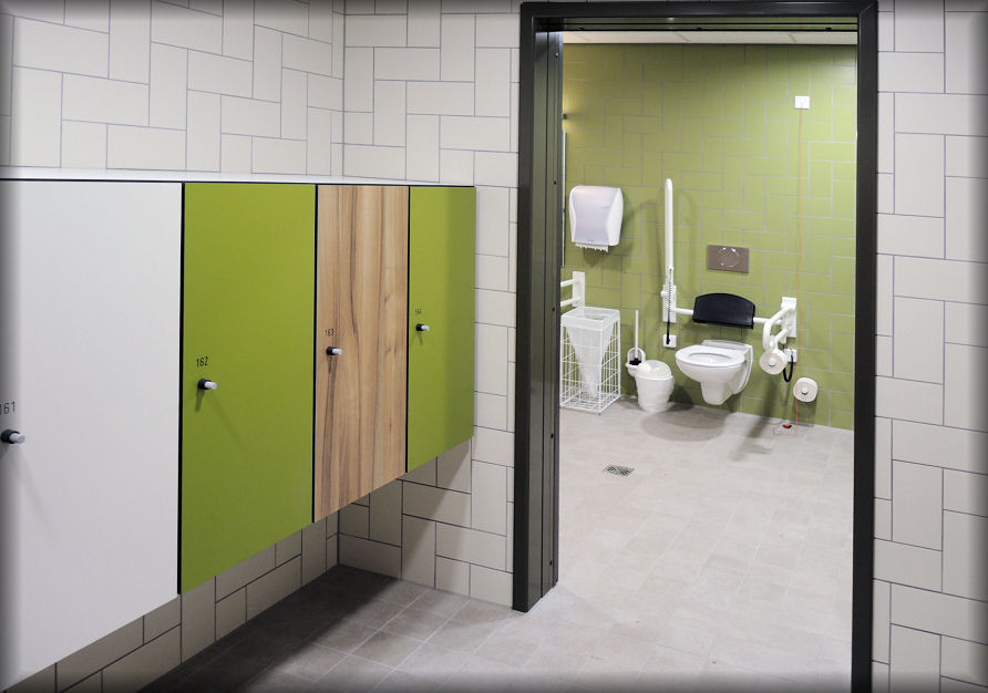 Großzügig und vorbildlich gestaltet ist dagegen der Bereich für körperbehinderte Bad-Besucher.